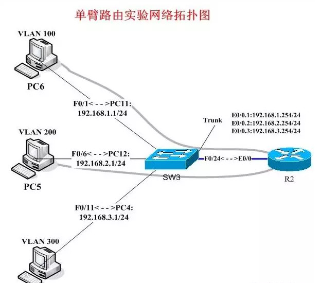 單臂路由的實(shí)現(xiàn)方式,其實(shí)就是普通二層交換機(jī)加路由器,從而實(shí)現(xiàn)不同vlan間的可以互相通信。