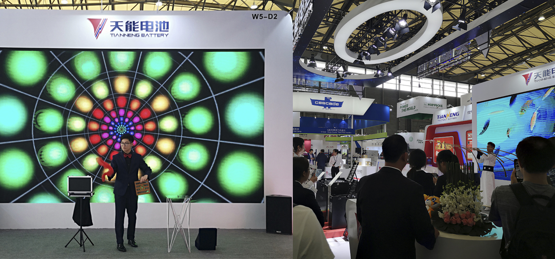 在上海新國(guó)際博覽中心W5館D2展位,現(xiàn)代、簡(jiǎn)潔、科技感十足的天能展區(qū)人山人海,吸引了來(lái)自德、美、俄、英、意、日、韓等國(guó)家和地區(qū)客戶(hù)駐足參觀。