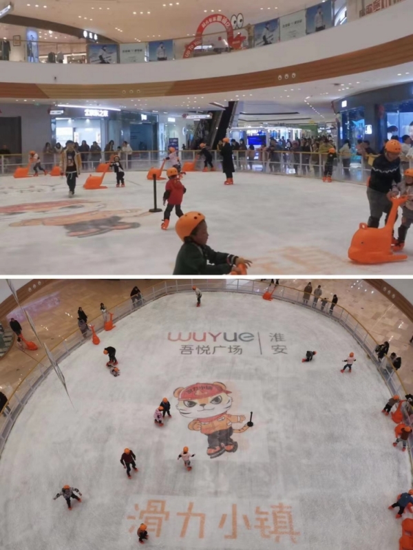 淮安吾悅廣場滑力小鎮(zhèn)真冰場于2023年4月正式投入運營,冰場為圓形,面積約為400平方,雖然是臨時冰場,但設計和施工方任然嚴格遵循專業(yè)冰場的技術標準,致力于打造一個安全、專業(yè)的室內(nèi)冰上運動空間。