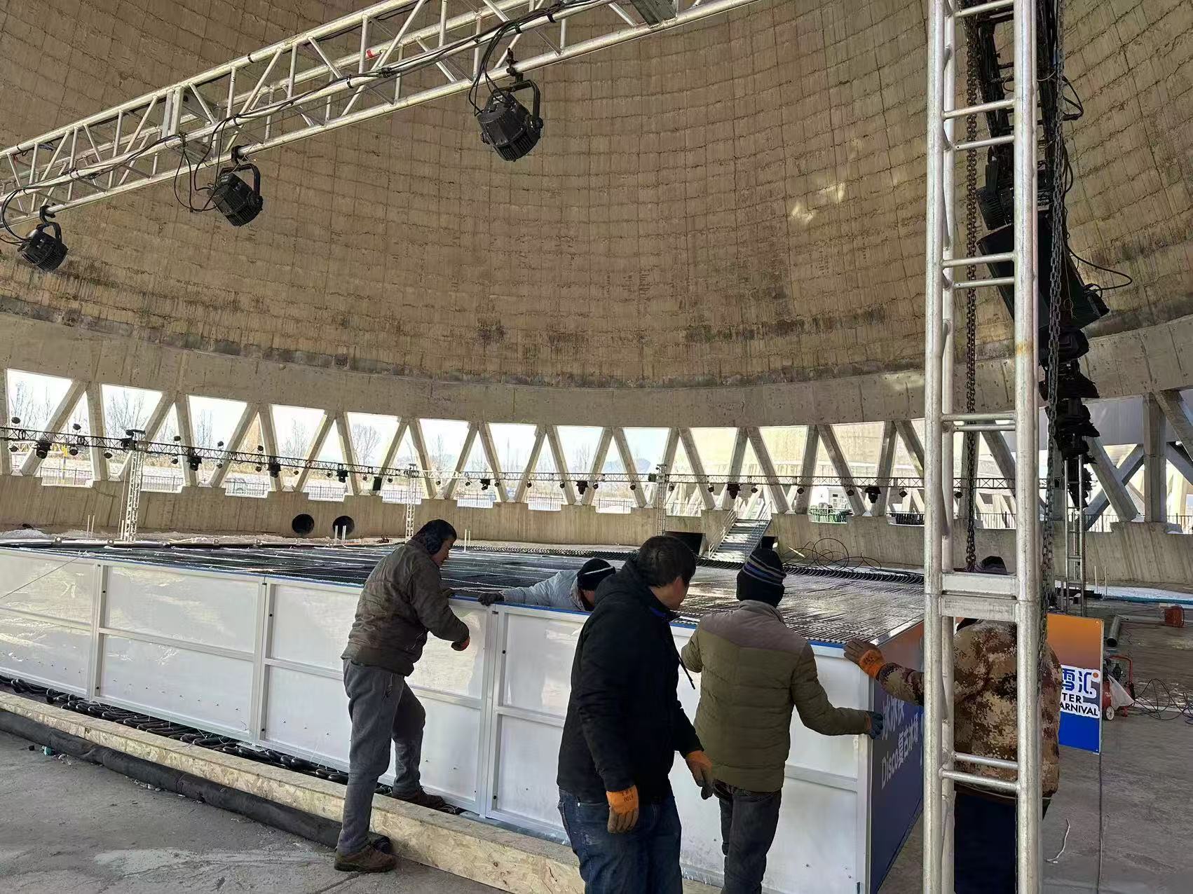 復(fù)古DISCO冰場(chǎng)約為1000平,舞美燈光音響、專業(yè)冰場(chǎng)制冷設(shè)備、圍欄、管道、冰鞋護(hù)具頭盔等設(shè)施、設(shè)備由上海古權(quán)電子科技有限公司提供和施工。