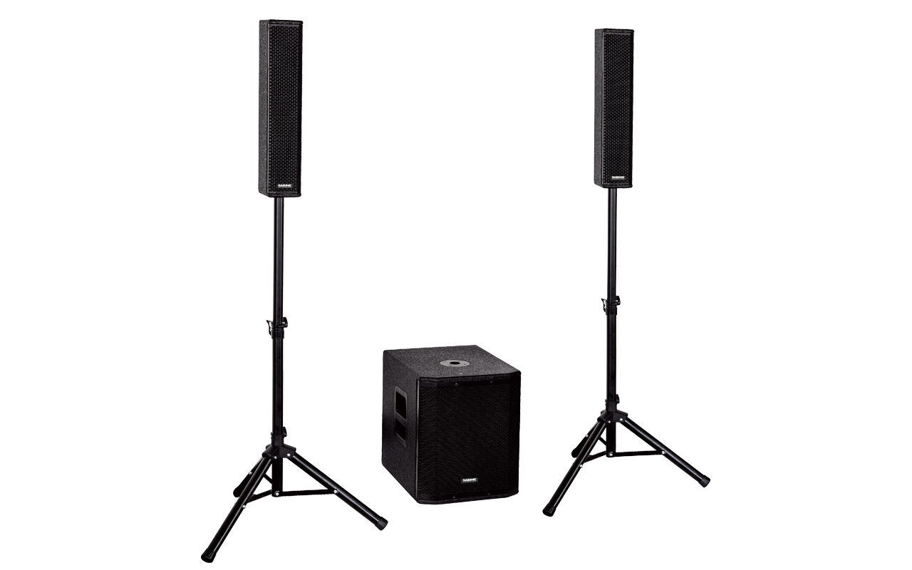 一對(duì)4 x 4”的有源C100H音柱全頻搭配一只單12”的有源C100B能夠滿足100-150平方米的室內(nèi)應(yīng)用方案。在臺(tái)口兩側(cè)各布置一只C100H,保證場(chǎng)內(nèi)全頻信號(hào)的均勻覆蓋,與之搭配的C100B體積小巧,能量大,可根據(jù)場(chǎng)地情況靈活布置,以實(shí)現(xiàn)低頻下潛信號(hào)的表達(dá)。適用于會(huì)議室,多功能廳,宣講會(huì)等場(chǎng)合。系統(tǒng)組建簡(jiǎn)單靈活,可實(shí)現(xiàn)流動(dòng)衛(wèi)星系統(tǒng)安裝,也可實(shí)現(xiàn)長(zhǎng)期固定安裝使用。
