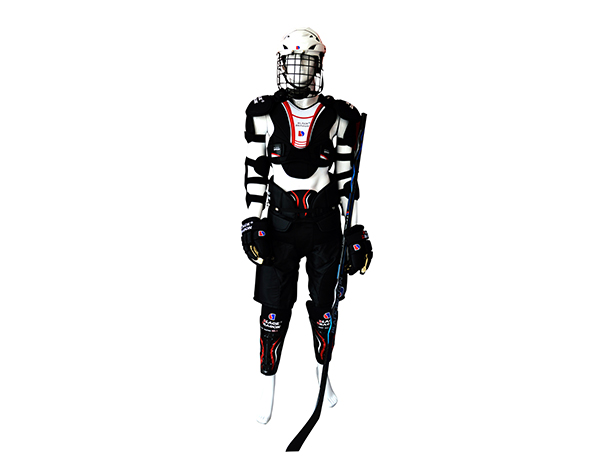 冰球運動員和裁判員裝備。有頭盔、護胸(護肩)、護肘、手套、護襠、褲叉、護腿和守門員頭盔等。所有運動員必須戴冰球頭盔,裁判員和邊線裁判員亦可戴頭盔。國際冰聯(lián)批準的20歲或20歲以下的年齡組比賽,運動員必須戴全護面罩,其結(jié)構(gòu)應(yīng)能阻擋冰球或冰球桿刃的通過。